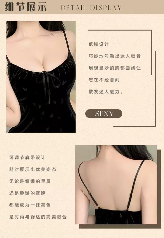 【Code】:XG296162 【Description】: one piece dress + Robe + belt (金丝绒velvet) 【Color】:black 【Product 】 : Free size (Suitable M to XL Size) 【Price】:Rm68 *Size chart * Free size Suitable M-XL size weight 54kg-65kg