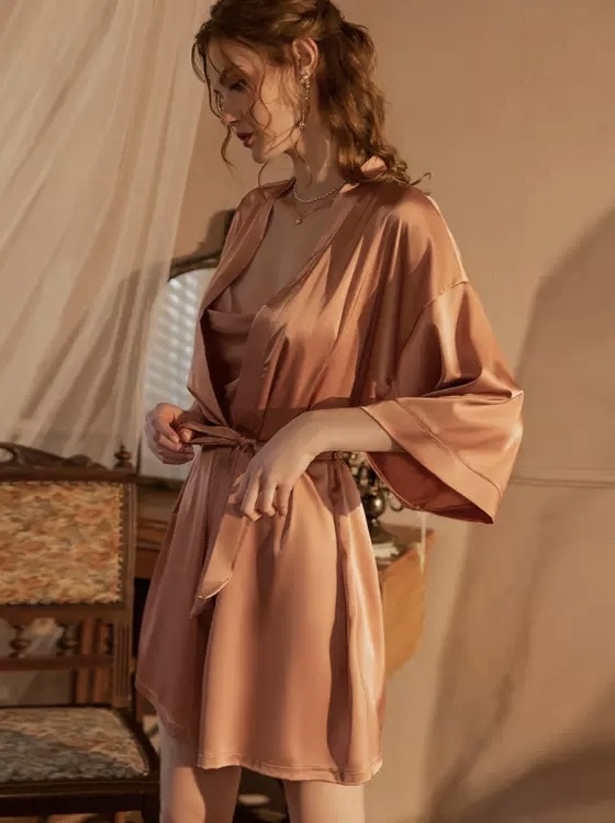 【Code】: XG102545 【Description】:Robe + belt 【Color 】: Rose gold 【Product Size】:Free size (Suitable S to 2XL size) 【Price】: Rm48 *Size chart * Free size Suitable S-2XL size 重量weight 40kg-75kg 胸围bust 118cm 袖长度Sleeve length 37cm 外套长度Robe length 89cm