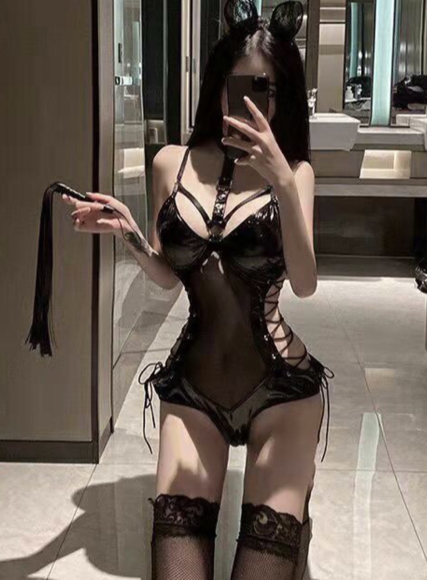 【Code】:XG179796 【Description】: one piece + neck ring (漆皮Patent leather、底下钮扣bottom button) 【Color 】:Black 【Product 】 : Free Size (Suitable S to L size) 【Price】:Rm32 *Size chart * Free size Suitable S-L size weight 40kg-58kg Hips size 76cm-95cm