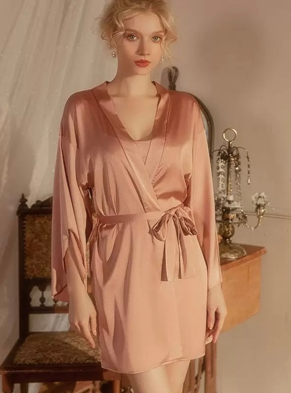 【Code】 : XG100434 【Description】:Robe + belt 【Color 】: Rose Gold 【Product Size】:Free size (Suitable S to 2XL size) 【Price】: Rm38 *Size chart * Free size Suitable S-2XL size weight 40kg-75kg bust 118cm Sleeve length 37cm Robe length 89cm