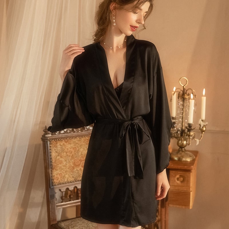 【Code】 : XG100434 【Description】:Robe + belt 【Color 】: Black 【Product Size】:Free size (Suitable S to 2XL size) 【Price】: Rm38 *Size chart * Free size Suitable S-2XL size weight 40kg-75kg bust 118cm Sleeve length 37cm Robe length 89cm